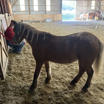 Sally is a spirited 30-something-year-old Shetland pony who has found her well-deserved retirement at Pride & Joy Rescue. Once a circus pony ring, she now enjoys a peaceful life surrounded by love and gentle care. Though she is blind and lives with PPID (Cushing’s Disease), her joyful personality and